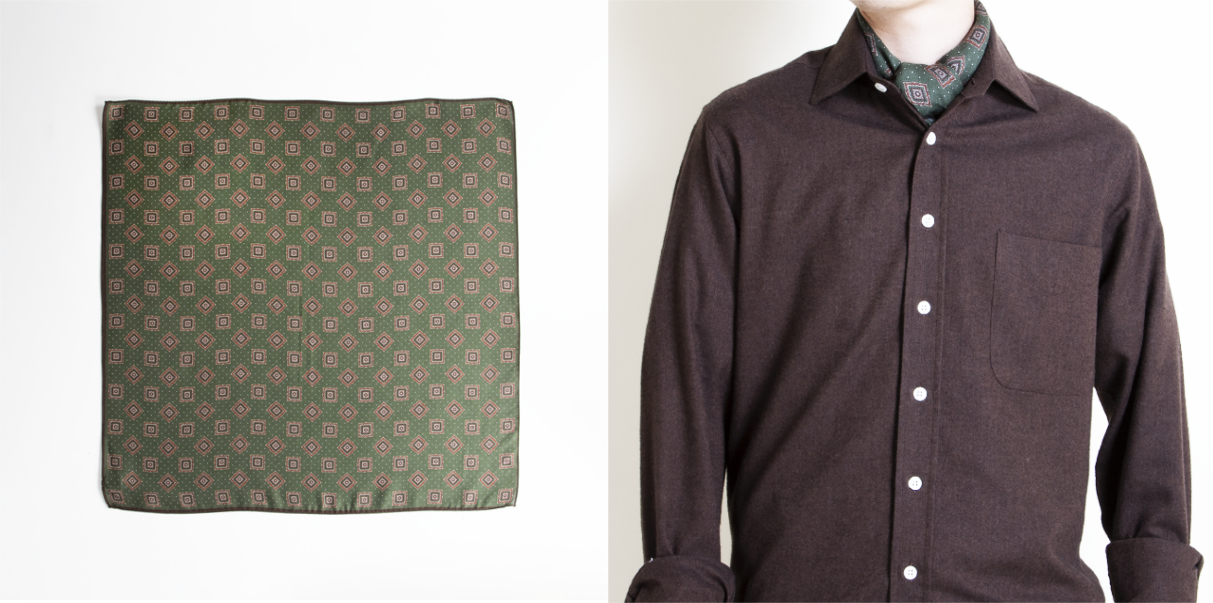 定番の65×65cmスカーフの新作が8型、ひし形のスカーフが新たに加わりました。